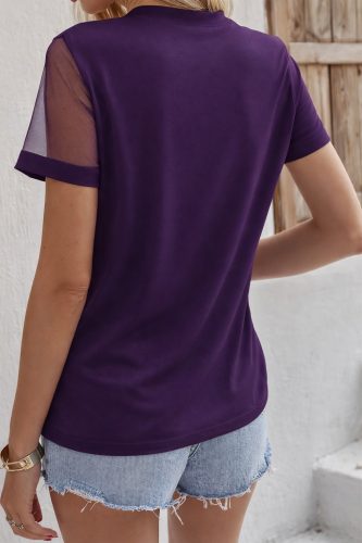 • Kadın kısa kollu tül detaylı taşlı Janjan krep bluz